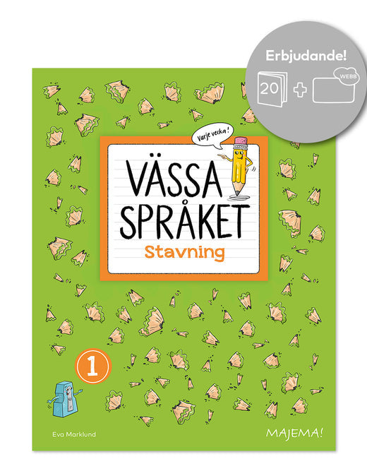 Vässa språket stavning 1 paket består av 20 arbetsböcker samt en lärarwebb. Lue lisää