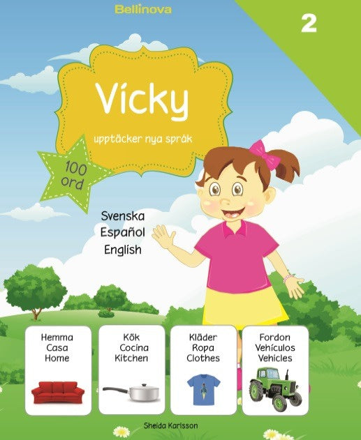 Vicky upptäcker nya språk 2 - en modern trespråkig bokserie för flerspråkiga barn. Nya Kategorier: hem, kök, kläder o fordon Finns tillgänglig på 10 olika språk: * Svenska / Persiska / Engelska * Svenska / Finska / Engelska * Svenska / Spanska / Engelska * Svenska / Arabiska / Engelska * Svenska / Engelska * Svenska / Polska / Engelska * Svenska / Turkiska/ Engelska * Svenska / Somaliska / Engelska * Svenska / Ryska / Engelska * Svenska / Bosniska-Serbiska-Kroatiska/ Engelska