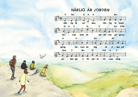 Vykort : Härlig är jorden! Vykort med motiv ur Barnens Bästa Bibel av Sören Dalevi och Marcus-Gunnar Pettersson.