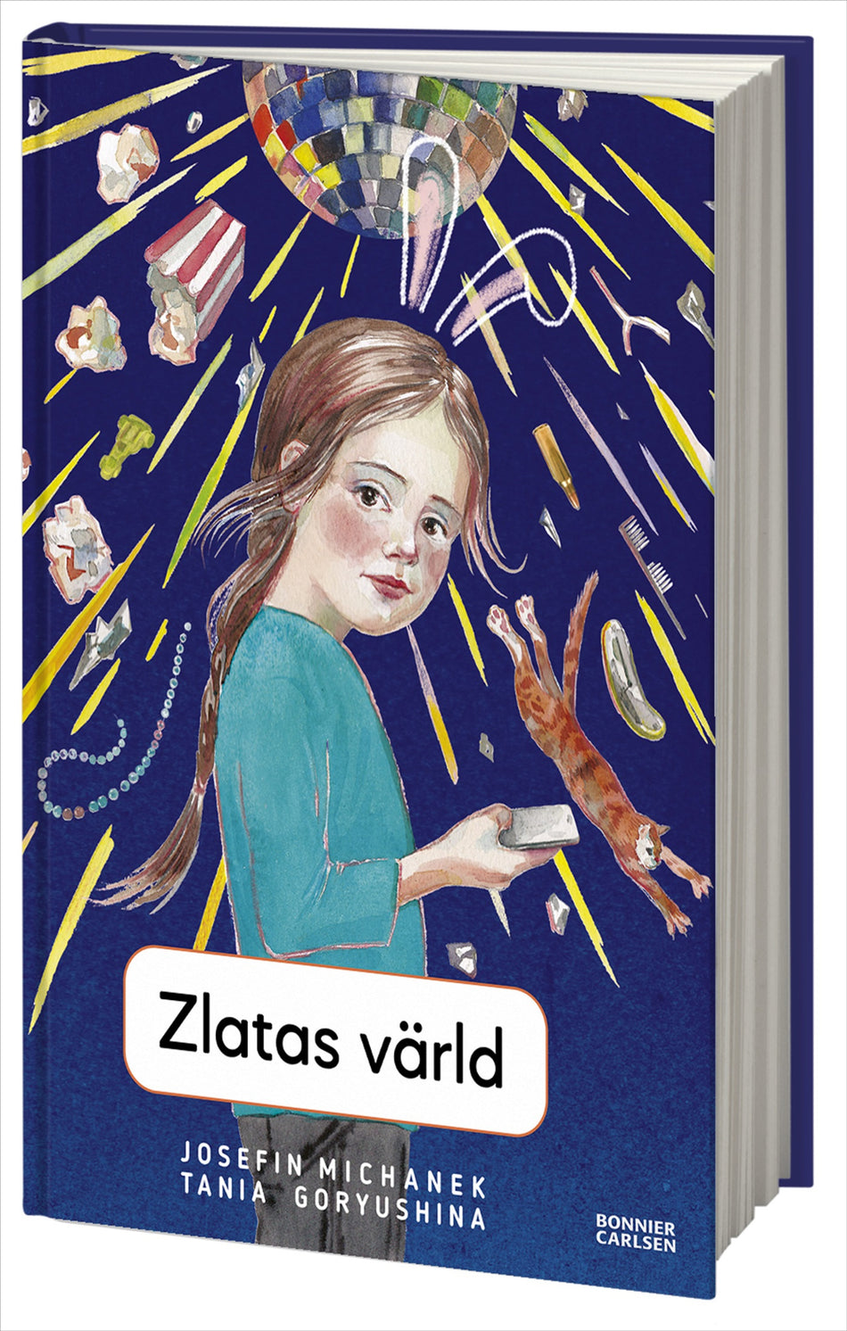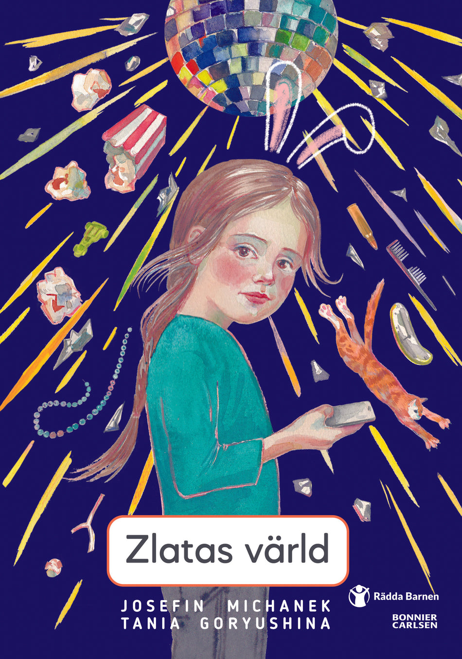 Kriget kom fort till Ukraina. Zlata hann knappt få med sig någonting alls. Favoritleksakerna blev kvar. Katten Storm också. Men värst av allt är att pappa och kusinen Maxim behövde stanna kvar.Det är så mycket som är nytt i Sverige. Maten, skolan och språket med alla konstiga ljud. Men godiset smakar lika gott här, nästan godare. Och det finns flera i klassen Zlata skulle vilja bli kompis med. Ändå hatar Zlata att vara ny i skolan och inte passa in. Hon hade ju redan en skola hemma, med solrosor utanför.Men Maxim ska komma, snart! Det har mamma lovat. Då kommer de att gå i samma klass igen. Och Zlata kommer inte längre vara den enda i skolan som inte hänger med i samtalen, inte vara den enda som inte har en studsmatta på tomten eller en pappa som bakar bullar.Fast veckorna går och ingenting händer. Maxim kommer inte. Förrän en dag när pappa ringer hemifrån Ukraina. Men han säger inte att Maxim är på väg, istället berättar han att Zlata och Maxims skola har blivit träffad och inte finns mer, är jämnad till marken. Då inser Zlata att hon måste kämpa ännu mer för att få Maxim att komma till Sverige.Zlatas värld är en drabbande berättelse om att vara barn när det blir krig. Om att lämna allt bakom sig i ett hemland, men också om att få ett nytt land, nya vänner och möjligheter. Om längtan, vänskap och att hitta sin plats i livet.Författaren Josefin Michanek arbetar som psykolog på Rädda Barnen och skriver utifrån möten med barn på flykt. Zlatas värld är en bok att beröras av och samtala om. Illustrerad av den erfarna illustratören Tania Goryushina.