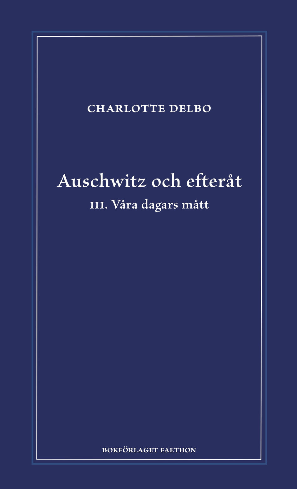 Charlotte Delbo (1913-1985) greps av den tyska ockupationsmakten 1942 i Paris efter­som hon tillhörde motståndsrörelsen. Hennes make avrättades medan hon deporterades med en konvoj den 24 januari 1943 till Auschwitz-Birkenau, som en av närmare 1 700 personer varav 230 kvinnor. Delbo var en av blott 49 kvinnor som överlevde. Hennes Auschwitz och efteråt i tre band utkom 1965 till 1971 och möttes av relativ tystnad. Med tiden har dock trilogin dock framstått som ett av de viktigaste litterära vittnesskildringarna på franska, inte bara från Auschwitz-Birkenau utan också av de deportationer som de franska kollaboratörerna medverkade till. Detta är första gången som Delbo ges ut på svenska. Thomas Andersson har översatt trilogin från franska.
