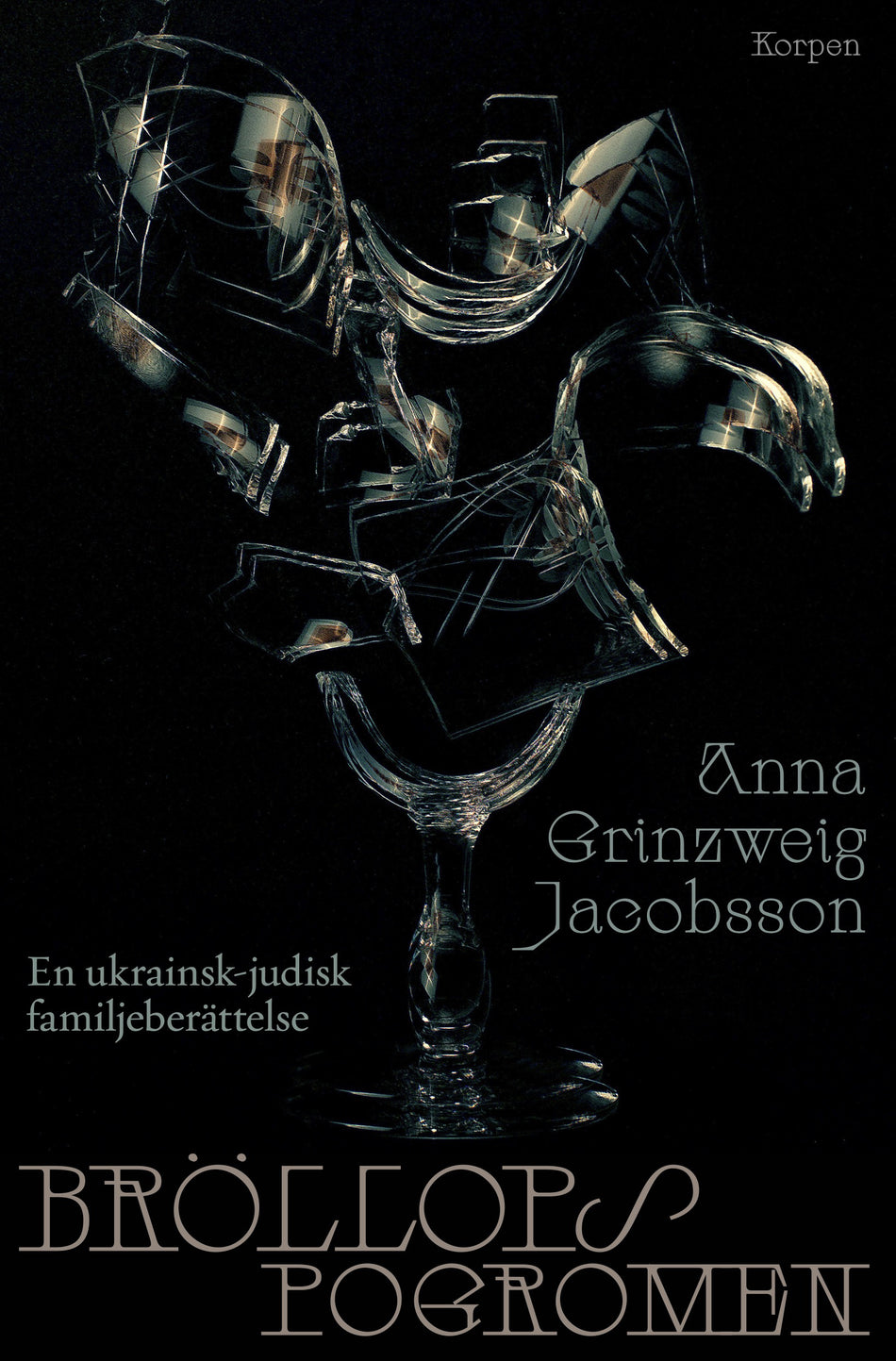 Hur klarar man sig i en diktatur, omgiven av propaganda och angiveri? Och hur vet man när det är dags att fly? Den 24 april 1920 gifter sig författarens morföräldrar Rebecka och Isaak i synagogan i en ukrainsk by. Inbördeskriget efter ryska revolutionen rasar. Ukraina kämpar för sin självständighet och den efterlängtade bröllopsfesten blir krossad av en pogrom. Så inleds denna skrämmande aktuella historia om förföljelse och flykt från pogromer, Stalins terror och Hitlers ockupation. Långt senare, inför sin nittiofemårsdag, avslöjar moster Roza hemligheter som varit så farliga att familjen raderat ut dem från sitt medvetande. Bröllopspogromen, som bygger på författarens samtal med Roza, är en berättelse om kärlek, sammanhållning och mod. Och om hur händelser i det förflutna fortfarande kastar smärtsamma skuggor in i nuet. Boken utkommer på årsdagen av Rysslands anfall på Ukraina den 24 februari 2023. Anna Grinzweig Jacobsson är fysiker och författare och leder Judiska Salongen i Göteborg. Hon föddes i Wroclaw i Polen och debuterade som författare med Flykten till Marstrand (Korpen 2020) som handlar om hur de polsk-judiska flyktingarna kom till Sverige 1969. Hon skriver också essäer och kritik för Göteborgs-Posten.  "Det är en rik och lärorik bok om en mörk tid. Men det är också en bok som sträcker sig in i vår samtid, där Ukraina åter igen är härjat av krig och där antisemitismen åter syns, illa dold i falska konspirationsteorier eller helt öppet i den högerextrema våg som sveper över världen. Anna Grinzweig Jacobssons berättelse behövs, mer än någonsin. [ ] Prosan är effektiv, utan tyngande känsloyttringar där det beskrivna är starkt nog i sig, men med en empatisk ömhet när vi befinner oss hos mostern eller i de stycken där Anna Grinzweig Jacobsson vänder sig direkt till sin mormor, den okuvliga Rebecka, , som under alla de vedermödor hon och hennes familj tvingas utstå behåller sin kärleksfulla livsgnista och sin mänskliga värdighet. Det är en skildring av en människa som vägrar bli ett offer, en skildring som inger hopp."Stefan Eklund, Göteborgs-Posten "... gripande och faktaspäckad ... lika mycket en berättelse om de europeiska judarnas öde som en skildring av Ukrainas konfliktfyllda historia."Clara Lee Lundberg, ETC "Bröllopspogromen är en utmärkt bok, där författarens osentimentala blick och koncentrerade, men mycket detaljrika, finslipade prosa snyggt och prydligt förmedlar en berörande bild av en modig familj på flykt. Helhetsbetyg 5 (av 5)"Elisabeth Brännström, BTJ