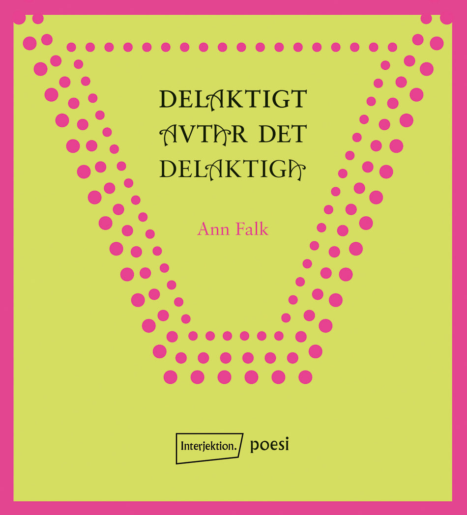 "Hjärtat mäklar det som inte är fredGlömskan mäklar det som inte är äktenskap"Delaktigt avtar det delaktiga är Ann Falks andra diktsamling på Interjektion förlag.