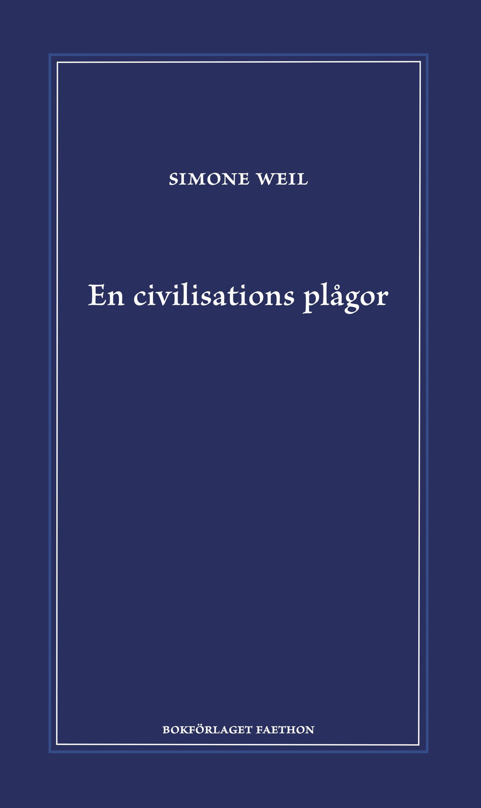 Simone Weil (1909-1943) var en fransk filosof vars betydelse med tiden ständigt ökar. Då inte bara hennes filosofisk-­litterära verk, utan också myten om henne som en kämpande intellektuell. Hon insåg tidigt nazismens faror och arbetade aktivt mot den, både filosofiskt och handgripligt i motståndsrörelsen. En civilisations plågor samlar sex texter av Weil som på olika sätt berör civilisationens kris under 1930- och 1940-talet, inte sällan analyserat genom den antika litteraturen och kulturen. Linn Aplemo har översatt och Christine Zyka har skrivit efterordet.