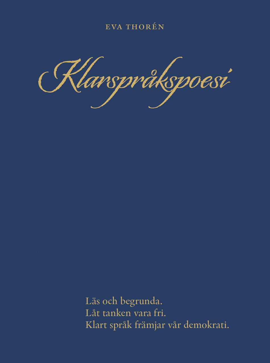 Klarspråkspoesi är en samling författningsuttryck som blivit till poetiska pärlor. Uttrycken är vackra i sin förvaltande form men passar inte i lagars paragrafer.Med inspiration från skriften Svarta listan – ord och fraser som kan ersättas i författningsspråk skriver Eva Thorén poesi som förflyttar ord från en genre till en annan och ger nya perspektiv på språket.PRESENTATIONEva Thorén är legitimerad ämneslärare i svenska och franska och tidigare språkexpert i statsförvaltningen.Hon har under många år arbetat för begripligt myndighetsspråk och modernisering av språket i lagar.
