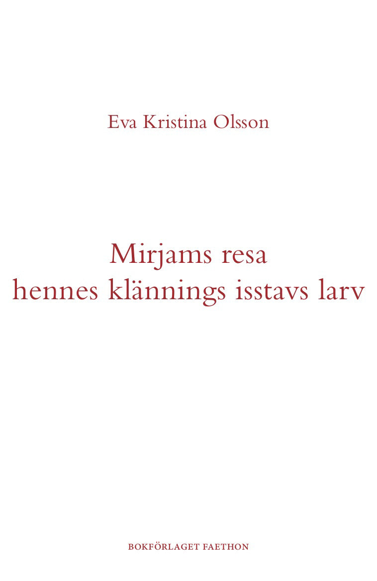 Mirjams resa hennes klännings isstavs larv är resultatet av poeten Eva Kristina Olssons intensiva umgänge och läsning av Mirjam Tuominen under mer än tjugo år. En lyrisk dialog, en spegling, ett samtal mellan två poeter.