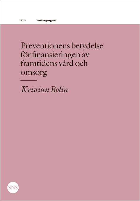 En åldrande befolkning och en därmed ökad efterfrågan på välfärdstjänster gör att behovet av vård och äldreomsorg förväntas öka snabbare än inkomsterna till systemet. För att lösa finansieringsproblemet talas det ofta om vikten av att förbättra systemets organisering och finansiering. En delvis förbisedd möjlighet är att försöka minska behovet av hälso - och sjukvård genom förebyggande hälsoåtgärder, så kallad prevention. Denna rapport undersöker sådana åtgärders potential. Särskilt fokus ligger på åtgärder som syftar till att förbättra människors levnadsvanor. Mer precist beräknas den samhällsekonomiska effekten av preventionsåtgärder riktade mot rökning, övervikt och fetma, otillräcklig fysisk aktivitet samt alkoholkonsumtion. Kristian Bolin är professor i hälsoekonomi och verksam vid Göteborgs universitet. Rapporten ingår i SNS forskningsprojekt Vårdens och äldreomsorgens organisering och finansiering.