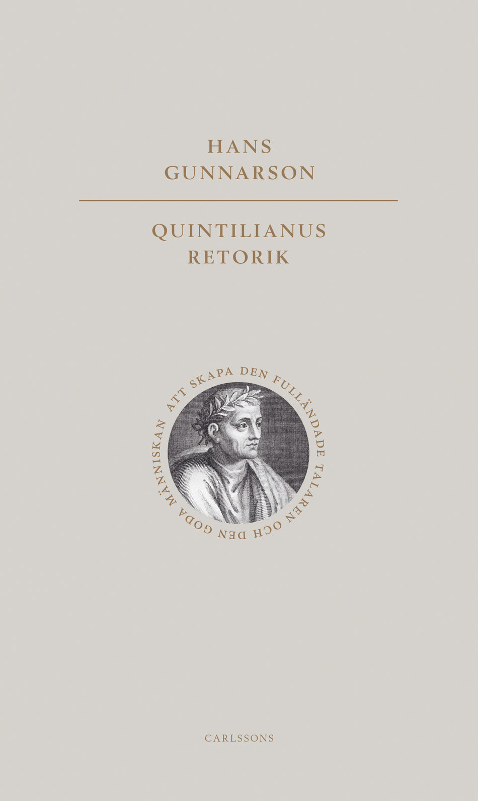 Att skapa den fulländade talaren och den goda människanQuintilianus är tillsammans med Cicero och Aristoteles de viktigaste personerna i retorikens historia. Quintilianus levde och verkade i Rom under det första århundradet efter Kristus. Ursprungligen advokat, fick han av kejsaren uppdraget att leda en retorikskola. Vid slutet av sitt liv skrev han ner sina tankar om retorikundervisningen i tolv böcker med titeln Institutio Oratoria. Quintilianus retorik är ett pionjärarbete. Tidigare har inte någon bok funnits på svenska som introducerar hela Quintilianus verk. Retorikern Hans Gunnarson gör en läsning av böckerna samtidigt som han söker efter paralleller till vår egen tid. Det är märkligt hur väl vi känner igen oss i Quintilianus livsvisdom fast det gått 2 000 år sedan verket skrevs. Inte bara retoriken är aktuell utan också tankarna om barnuppfostran och pedagogik. Ingen annan författare från antiken går så noga igenom hur man uppfostrar de små barnen. Med sin respekt för barnets inneboende kreativitet och kritiken av barnaga är Quintilianus långt före sin tid. Moralen är grundläggande för honom. Han skiljer sig även från andra stora retoriker genom att så starkt betona att talaren, för att lyckas, måste vara en god människa, vir bonus. En tänkvärd aspekt inte minst idag när lögner och fake news florerar. Hans Gunnarson är retoriker. Han har skrivit flera läroböcker i retorik och i många år arbetat som retoriklärare och föreläsare. Hans första bok Vältalaren gavs ut 1996 och har sedan tryckts i många upplagor. Boken Talskrivarna om retoriken i politiken kom 2017 på Carlsson Bokförlag. Under åren har Gunnarson medverkat i tidningar, radio och tv. Den klassiska retoriken har alltid varit hans bas och romaren Quintilianus har länge varit en följeslagare och inspiratör.