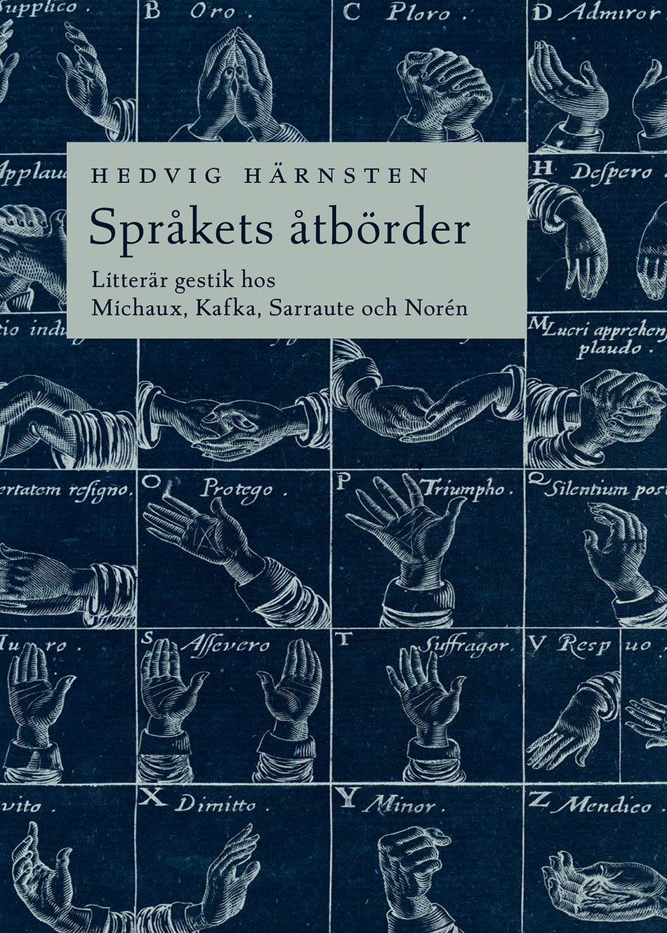 I denna studie undersöker Hedvig Härnsten vad gester – tysta, fysiska rörelser – fyller för funktion i litteraturen och huruvida litteraturen själv kan gestikulera. Litteratur består av ord, inte av kroppar som rör sig. Ändå försöker vissa författare att få litteraturen att tala utan ord, som vore den en kropp. Vid tiden för modernismens genombrott invaderas konsten av gester och litteraturen är inget undantag. Men vad händer med gesterna när de förvandlas till svarta tecken på boksidorna? Kan man tala om en litterär gestik?  Med utgångspunkt i fyra författarskap – Henri Michaux, Franz Kafka, Nathalie Sarraute och Lars Norén – utforskar Härnsten varför åtbörder letar sig in i språket och hur det påverkar litteraturens innehåll och form. Språkets åtbörder tecknar en djuplodande bild av vad litterär gestik är, både som ett estetiskt problem och som en tendens i den litterära modernismen.