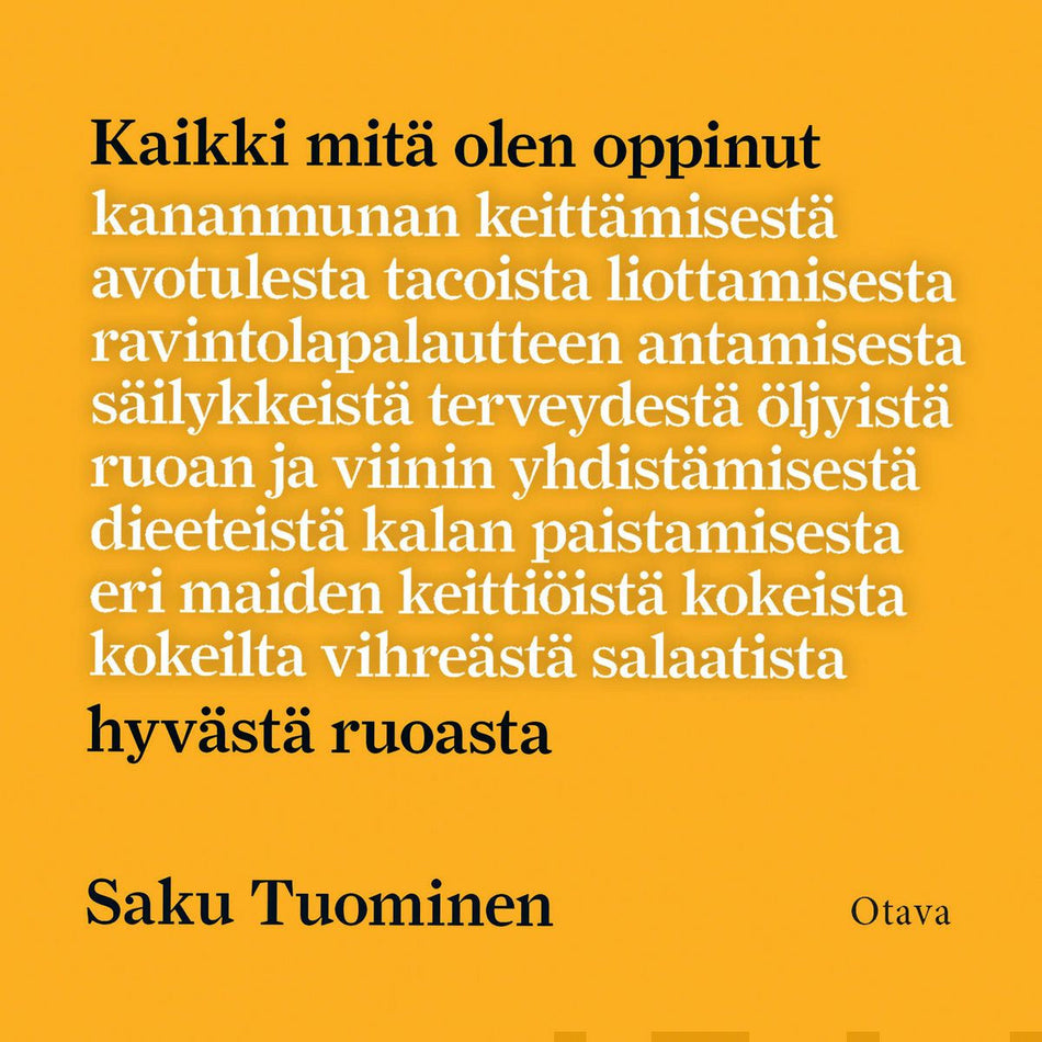 Viihdyttävä ja helposti lähestyttävä teos sisältää intohimoisen ruokaharrastajan parhaat opit 30 vuoden varrelta - usein yllättävästä näkökulmasta. Omakohtaisia oivalluksia, käytännön vinkkejä ja konstailemattomia suosikkireseptejä voi lukea sekä lieden ääressä että sängyssä. Teemat vaihtelevat kokkaustekniikoista ja raaka-aineista ravintolakulttuuriin, terveellisestä ruoasta viineihin ja eri maiden keittiöihin.