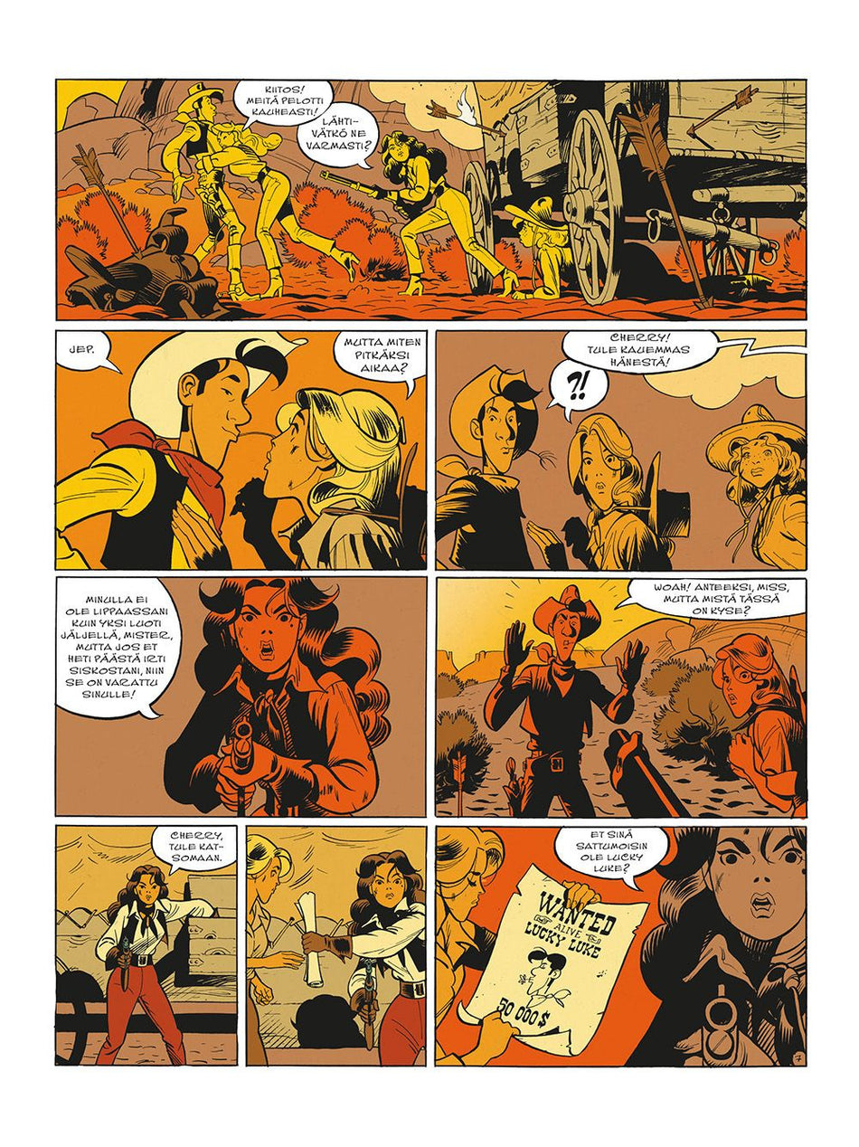 Matthieu Bonhommen Lucky Luken 70-vuotisjuhlaa kunnioittanut upea albumi Mies joka ampui Lucky Luken valloitti sekä lukijat että kriitikot vuonna 2016, ja nyt vihdoinkin on itsenäisen jatko-osan aika. Wanted Lucky Luke heittää lännensankarimme suoraan keskelle toimintaa, sillä hänen päästään on l... Lue lisää