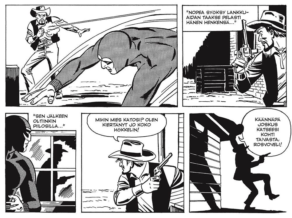 Tämän albumin tarinoissa Mustanaamio jättää taakseen sekä viidakon että suurkaupunkien kadut, sillä Vaeltava aave ylittää nyt valtameren ja jakaa oikeutta Villissä Lännessä. Alkuperäisasukkaat ja uudisasukkaat saavat pahuuden ikuisesta vihollisesta väkevän liittolaisen, kun preerialla kaivataan v... Lue lisää