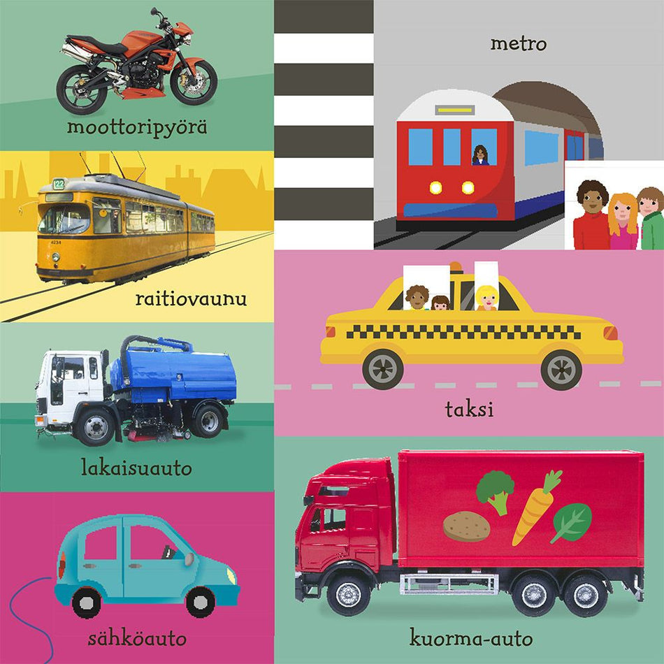 Tästä katselukirjasta löytyy kaikenlaisia kulkupelejä maalla, merellä ja ilmassa, autosta työkoneisiin ja laskuvarjosta luistimiin. Katseltavaa ja juteltavaa riittää moneksi kerraksi, ja samalla lapsen sanavarasto kasvaa. Lue lisää