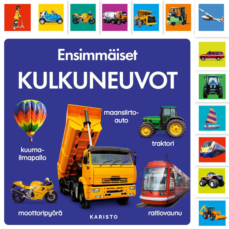 Opettele kulkuneuvoja potkulaudasta puskutraktoriin ja kanootista tukkirekkaan. 13 erilaista teema-aukeamaa ja valokuvakuvitus. Sivujen reunoissa on kuvallinen hakemisto.