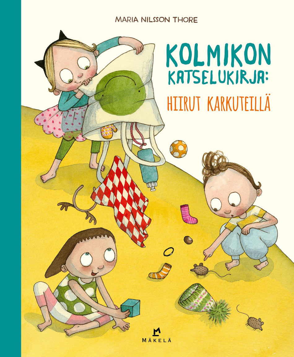 Päiväkotielämää lämpimän humoristisesti kuvaava Kolmikko-sarja jatkuu tukevasivuisella etsi ja löydä -kirjalla.
