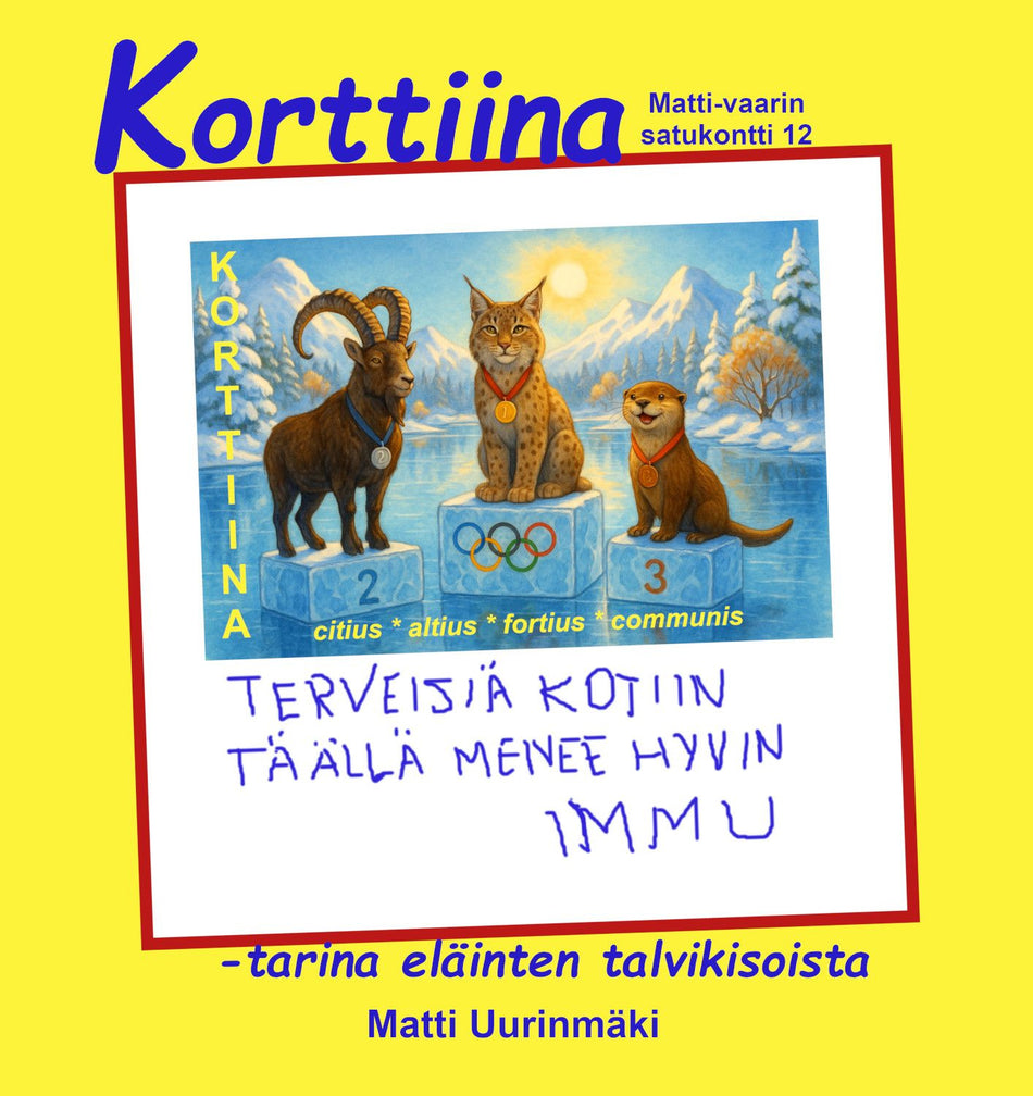 Korttiina -tarina eläinten talvikisoista on ensisijaisesti taaperoikäisille suunnattu tarinakirja eläinten maailmaan sovitetuista talviolympialaisista.