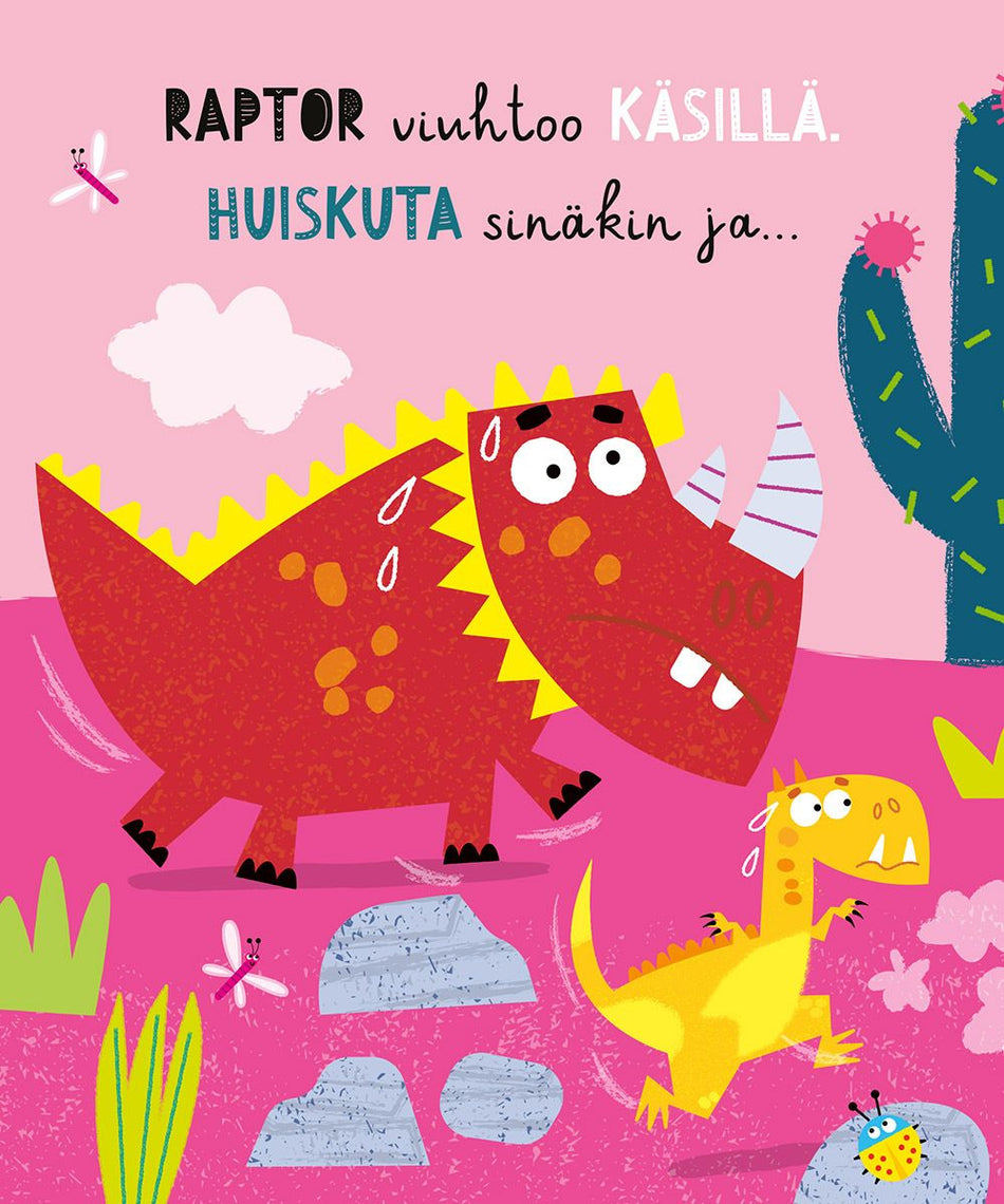 Vilkuta, virnistele ja maiskuttele dinosaurusten tavoin ja katso hauskoja ilmeitäsi ja eleitäsi kirjan peilistä! Iloinen, lasta aktivoiva kirja rytmikkäine teksteineen sopii hyvin luettavaksi ääneen. Lue lisää