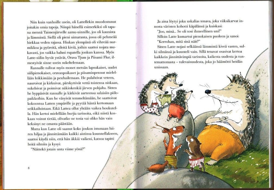 Latte-siili tuntee itsensä jo vanhaksi. Arvokas Vesikivi on palautettu takaisin Kotimetsään, ja hurjat seikkailut ilvesten, susien ja pelottavan Karhukuningas Banturin valtakunnissa ovat takanapäin. Nyt Latte-siili haluaa vain viettää leppoisia päiviä rakkaassa Kotimetsässään, ja käydä aamu-uinni... Lue lisää