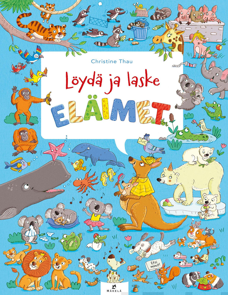 Nyt tarvitaan tarkkaa silmää ja laskutaitoa! Kuinka monella majavalla on uimahousut? Entä kuinka monta raidatonta tiikeriä löydät? Tai koiraa, jolla on rusetti? Värikkäästi kuvitetussa etsimiskirjassa löydetään ja lasketaan eläimiä, jotka ovat mitä hullunkurisimmissa puuhissa! Kirja kannustaa tarkkoihin havaintoihin, keskittymiseen ja silmän ja käden yhteispeliin. Jos olet tarkka, voit ratkaista kaikki kirjan tehtävät ja kysymykset! Oikeat vastaukset löytyvät kirjan lopusta.