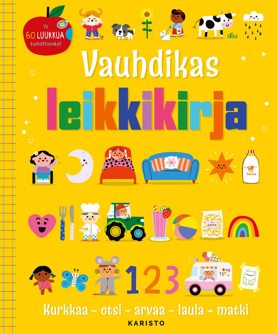 Tämän kirjan kanssa ei aika tule tylsäksi! Tanssi, laula, leiki ja etsi! Mahtava määrä loruja, luukkuja, löytämistä ja tekemistä. Luukkujen alla on helppo ohjeistus pienestä aktiviteetista.