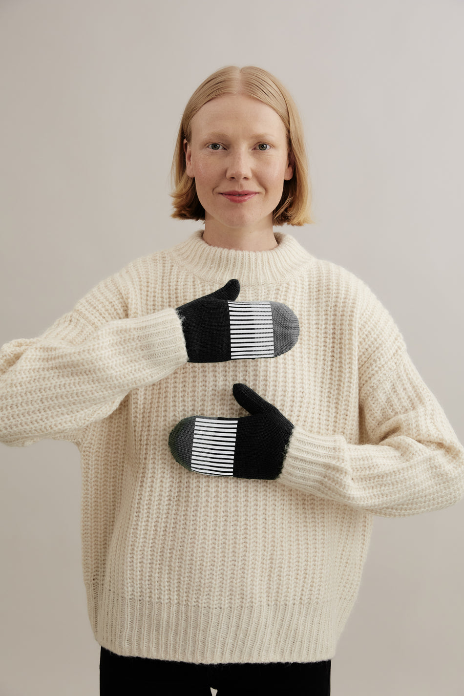 Polku-lapasissa heijastava kuvio on painettu molemmille puolille lapasta. Siksi niillä onkin kätevää esimerkiksi viittoa bussia pysähtymään. Suosittelemme Polkua eritoten käytännöllisyyttä ja ajattomuutta arvostaville tyypeille! Merinolapaset on valmistettu Suomessa. Lue lisää