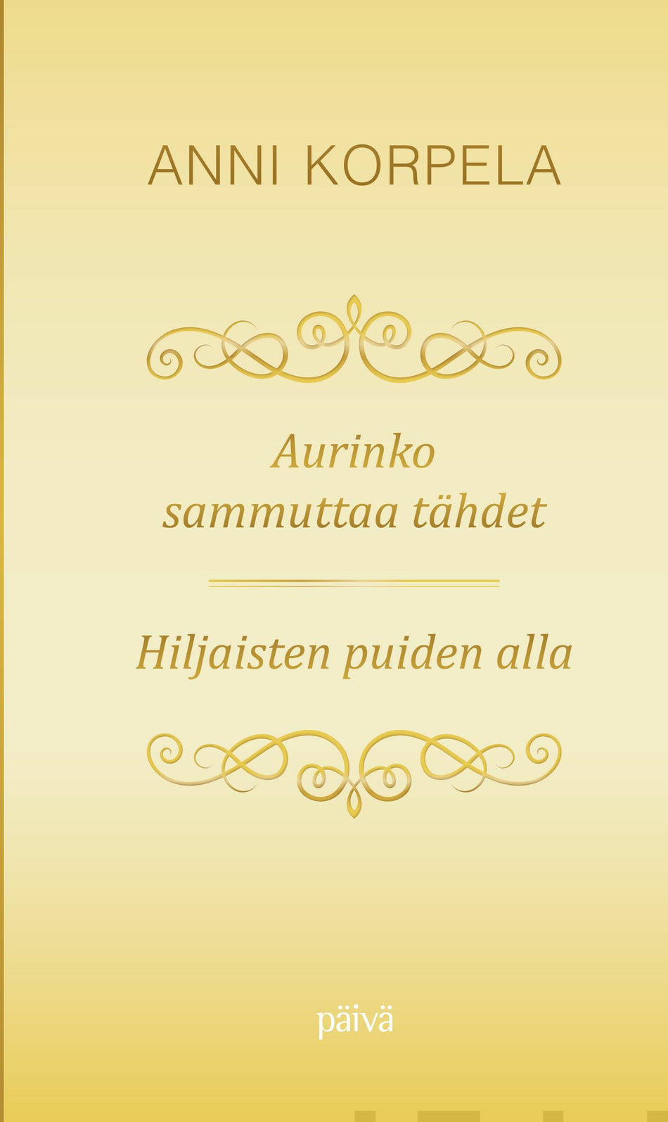 Vuonna 2015 tulee kuluneeksi 100 vuotta Anni Korpelan syntymästä ja 40 vuotta siitä, kun Päivä julkaisi hänen esikoisteoksensa "Aurinko sammuttaa tähdet". Juhlavuoden kunniaksi julkaistaan yksissä kansissa Anni Korpelan kaksi kirjaa: esikoisteos ja "Hiljaisten puiden alla" (Päivä 1977):