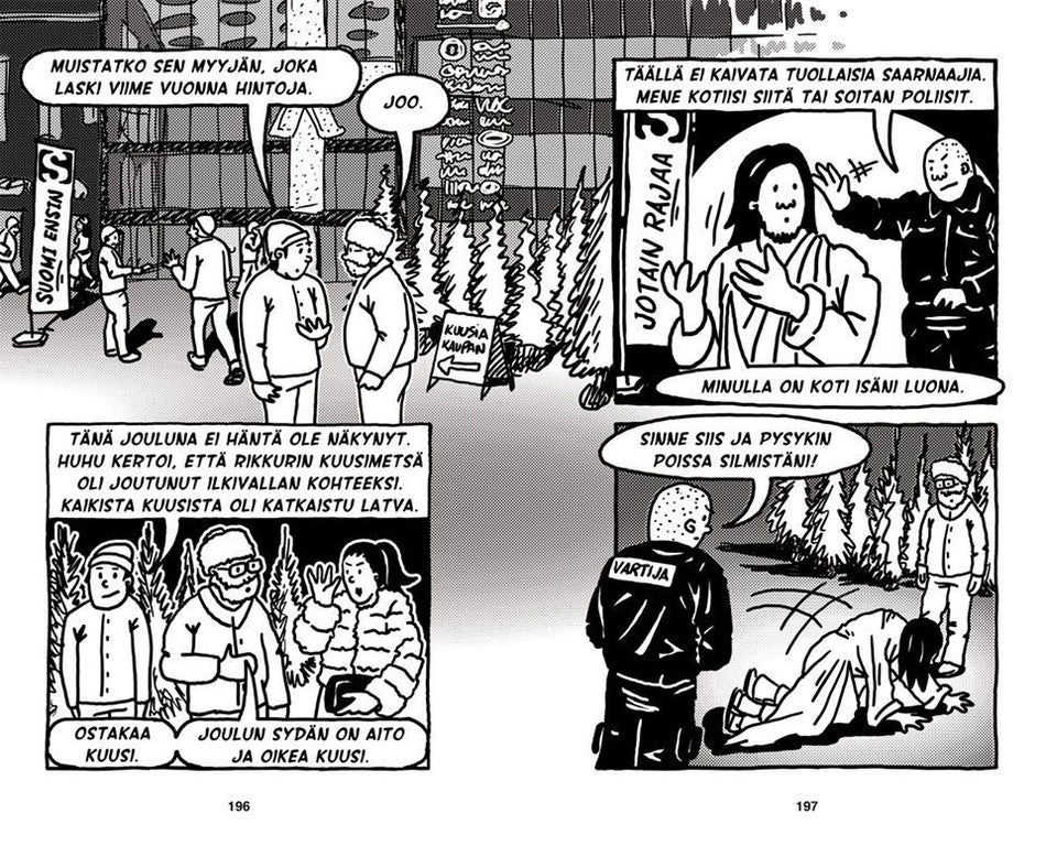 Sarjakuvaromaani on mukaansatempaava ajankuvaus niin uskonnoista, politiikasta, ympäristönsuojelusta kuin rakkaudestakin. Nämä 12 kertomusta ovat matkakirja ihmiskunnan päivänpolttavien kysymysten äärelle. Teos ei ole uskonnollinen nimestään huolimatta, paitsi että onhan siellä se Jeesus.