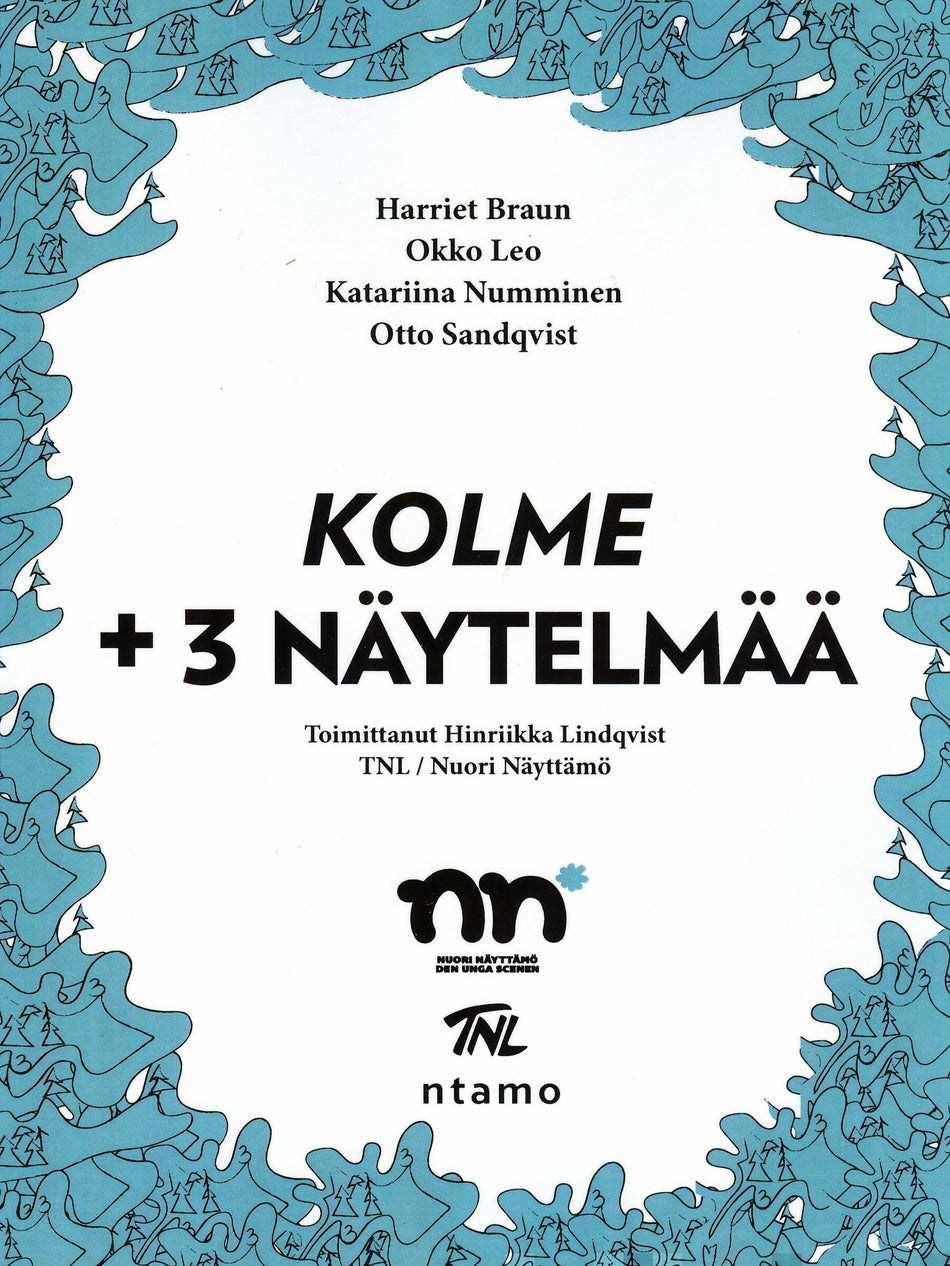Kirja sisältää siis Braunin KOLMEn/THREEn lisäksi kolme muuta teatteriteosta. Lisäksi mukana ovat kirjailija- ja suomentajaesittelyt sekä näytelmäkirjailija-dramaturgi Annina Enckellin esipuhe. Nuori Näyttämö yhdistää opinahjojen ja vapaiden ryhmien teatteriharrastajat alan ammattilaisiin. KOLME + 3 NÄYTELMÄÄ on jatkoa ntamon & TNL:n aiemmille yhteisopuksille VIISI NÄYTELMÄÄ (2018) ja NELJÄ NÄYTELMÄÄ (2015).