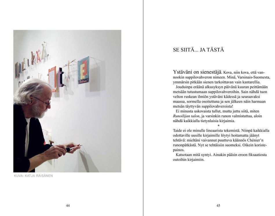 Ismo Kajanderin taidekirja Runoilijan talo on teos oudosta talosta, oudosta runoilijasta, runon oudoista kirjaimista ja niiden synnyttämistä kahdesta oudosta taideteoksesta: ”Runoilijan talosta” ja ”Hommage à André Chénieristä”.