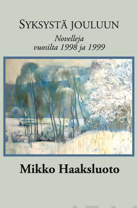 Käsissäsi oleva teos Syksystä jouluun sisältää Kerimäellä vuonna 1974 syntyneen Mikko Haaksluodon varhaisia novelleja vuosilta 1998 ja 1999. Mikko Haaksluoto on aikaisemmin julkaissut neljä novellikokoelmaa ja yhden runokokoelman. Vuodesta 2007 lähtien hän on asunut Kotkassa.