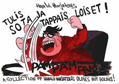 Harald Harjateräs iskee terävästi aikamme ilmiöihin aseenaan kynä ja vesiväripensseli.