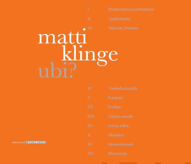 Uusilla runoillaan Klinge jatkaa kävelyretkiään Suomen ja Euroopan kaduilla, seuraa runoillaan ajatuksiaan ja niiden myötä eurooppalaisen sivistyksen monimutkaista menneisyyttä, josta olemme tähän tulleet.