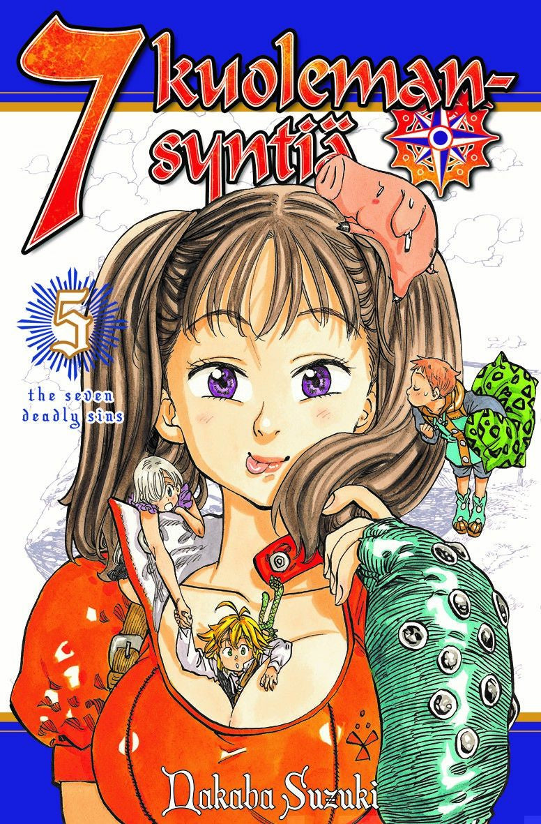 Nakaba Suzuki luo koukuttavan seikkailukertomuksen, joka kunnioittaa fantasian perinteitä mutta ei silti jämähdä kaavoihin. Toiminta, huumori ja jännitys saavat kaikki sijansa eloisasti piirretyssä tarinassa. Kotimaassaan Japanissa hitiksi noussut manga 7 kuolemansyntiä on saanut animaatioversion, joka on nähtävissä myös Netflixissä. Ikäsuositus: 12+