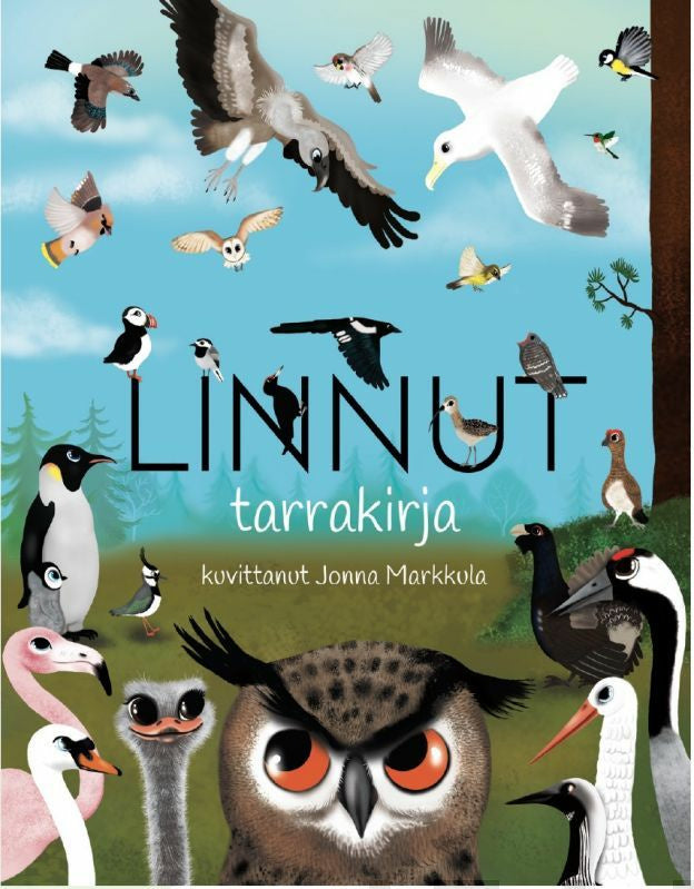Jonna Markkulan upeasti kuvittamassa kirjassa esitellään lintumaailmaa. Ensin tutustumme Suomessa eläviin lintuihin sekä kesällä että talvella, ja kirjan loppuosassa ihastelemme eksoottisempia kaksijalkaisia muualta maailmasta.