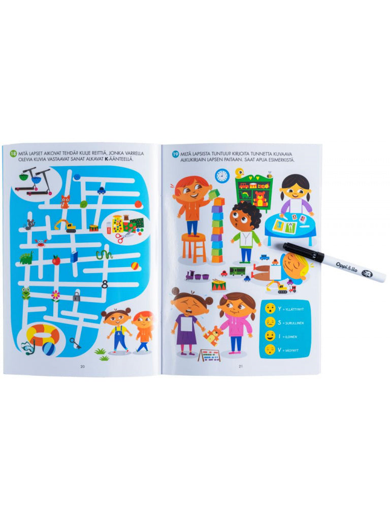 Millä äänteellä sana apina alkaa? Entä mihin äänteeseen sana avain päättyy? Osaatko ratkoa kirjainsokkelon? Monipuolisissa tehtävissä tunnistetaan kirjaimia, kuulostellaan äänteitä ja kirjoitetaan ensimmäisiä sanoja. Iloiset tehtävät kehittävät lapsen luku- ja kirjoitustaitoa kuin huomaamatta. Po... Lue lisää