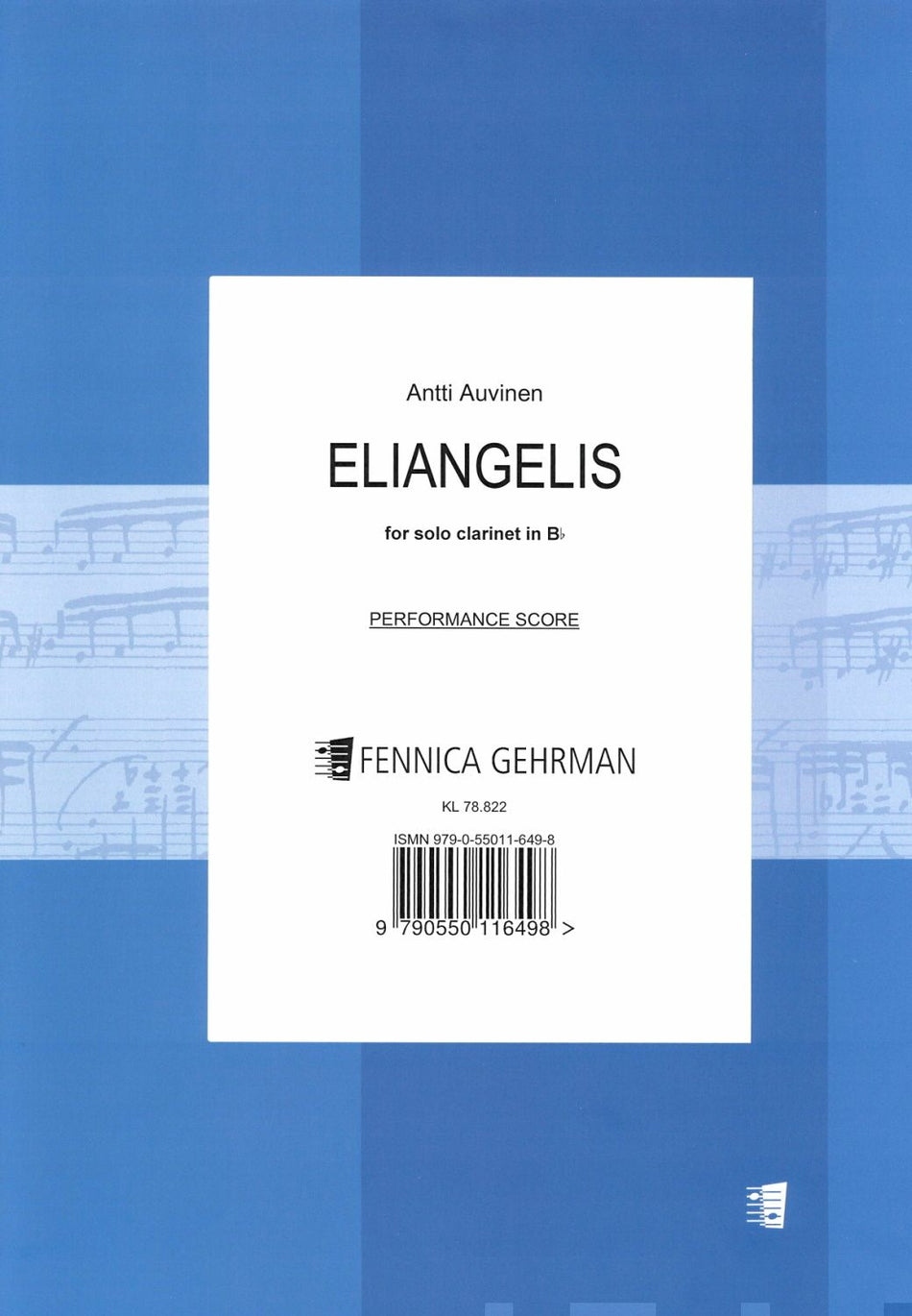 Antti Auvisen Eliangelis (2005) klarinetille haastaa perinteisen tavan kirjoittaa yksiääniselle soolosoittimelle: toisaalta monikerroksiset multifonikuviot luovat illuusion polyfoniasta ja toisaalta soittaminen normaaliäänen, murretun äänen ja säveltasottoman suhinan raja-alueilla laajentaa klarinetin sointivärimaailmaa. Poikkeuksellisin soittotavoin tuotetut ääni-ilmiöt eivät kuitenkaan kuulosta päälleliimatuilta, vaan Auvinen käyttää niitä musiikillisen sisällön palveluksessa soittimen ominaislaatua ymmärtäen. Teoksen tilannut Asko Heiskanen kantaesitti sen Kuopiossa lokakukussa 2005. Mikko Raasakka on taltioinut teoksen Eliangelis-nimiselle levylleen.
