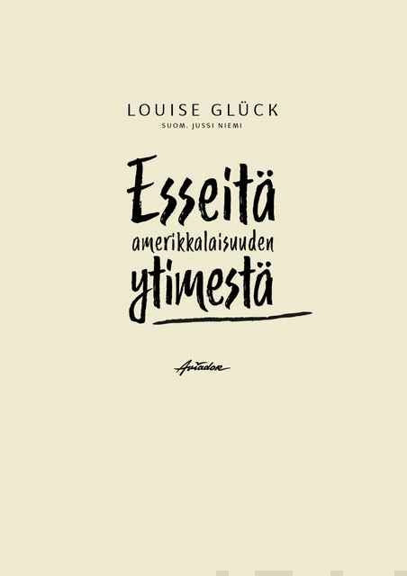 Laajan ja korkeatasoisen runotuotantonsa lisäksi Glück tunnetaan myös hienona esseistinä. Kokoelmassaan Esseitä amerikkalaisuuden ytimestä hän käsittelee sekä amerikkalaisen kulttuurin syviä ominaispiirteitä että yleismaailmallisia aiheita. Tuore nobelisti ottaa käsittelyynsä myös romaanitaiteen ja esittää analyysinsa tarinoiden kertomisen perimmäisestä luonteesta.
