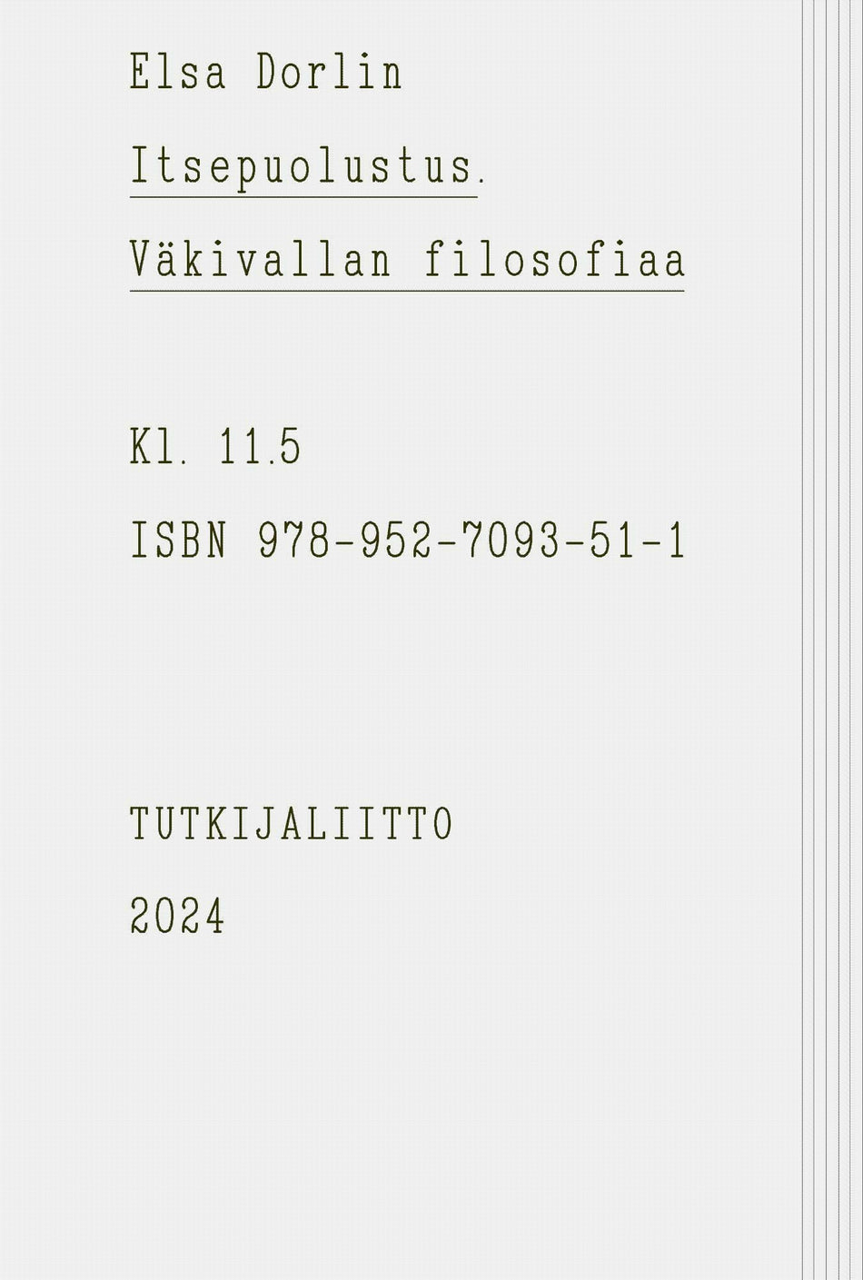 Itsepuolustus. Väkivallan filosofiaa on ranskalaisen filosofi Elsa Dorlinin palkittu teos, jossa hän kehittää itsepuolustuksen genealogiaa ja fenomenologiaa sekä tutkii dekolonisaatiokamppailuja itsepuolustuksen käsitteen ja käytäntöjen kautta. Dorlin esittää, että itseään puolustavat subjektit o... Lue lisää