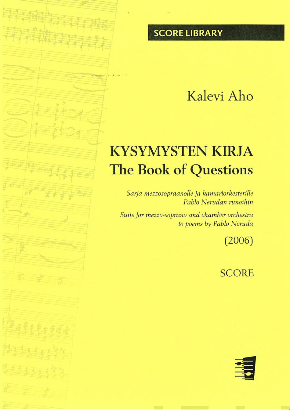 The Book of Questions for mezzo-soprano and chamber orchestra (2006) is part of an entire concert, which Kalevi Aho (b. 1949) composed for the Chamber Orchestra of Lapland to be premiered in 2007. In the spring of 2006, he came across the posthumously published collection The Book of Questions (1974) by Pablo Neruda (1904-1973), the Chilean poet and winner of a Nobel Prize. The Book of Questions is Neruda's last work, an unconventional testament to his work as a poet. The collection consists exclusively of questions, many of which are strange or unusual in character: they force the reader to look at things in an entirely new perspective. Aho selected the texts for the song cycle from Neruda's questions and combined them into eleven new sets, each containing between two and seven different questions. The Book of Questions thus became a meditative, philosophical song cycle. All eleven sets of questions are performed without a break, and the duration is c. 24 minutes.