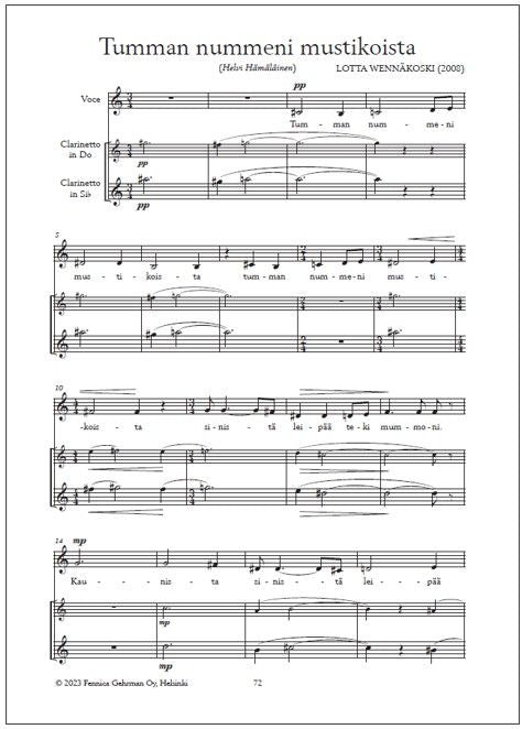 Tumman nummeni mustikoista (Helvi Hämäläinen) lauluäänelle ja klarinetille • for voice and clarinet