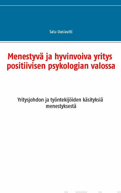 - Avainsanat yritykset; menestys; johtaminen; positiivisuus; menestyminen; työhyvinvointi; psykologiset tekijät; yritystoiminta; pankit; positiivinen psykologia; menestystekijät; työssämenestyminen; vahvuuksien psykologia