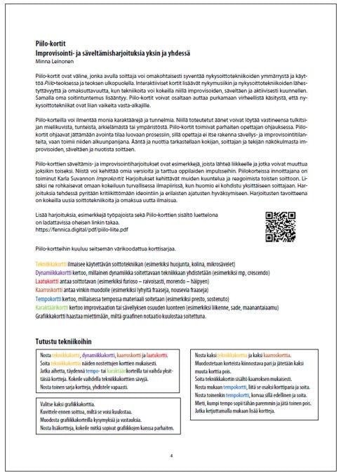 Minna Leinonen (1981): Piilo-kortit: improvisointi- ja säveltämisharjoituksia yksin ja yhdessä