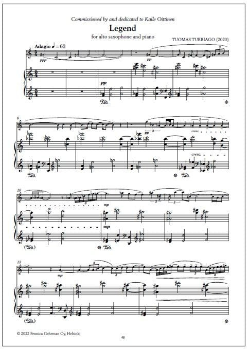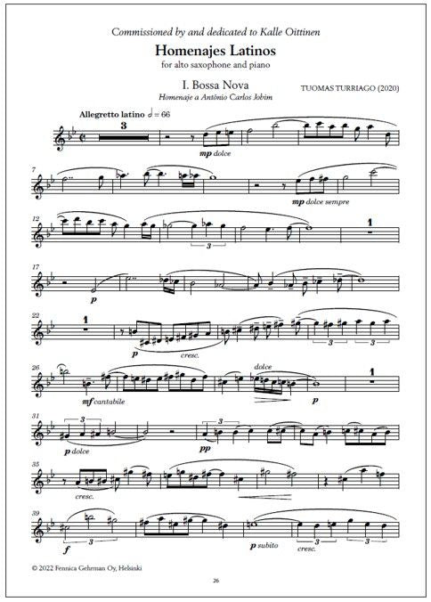 Tuomas Turriago (1979): Homenajes Latinos; Legende alttosaksofonille ja pianolle