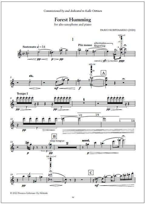 Paavo Korpijaakko (1977): Forest Humming alttosaksofonille ja pianolle