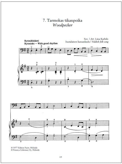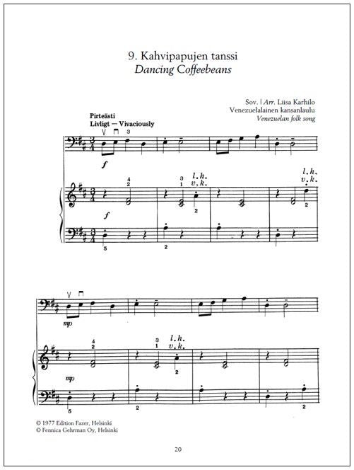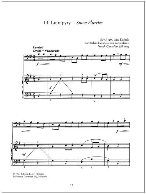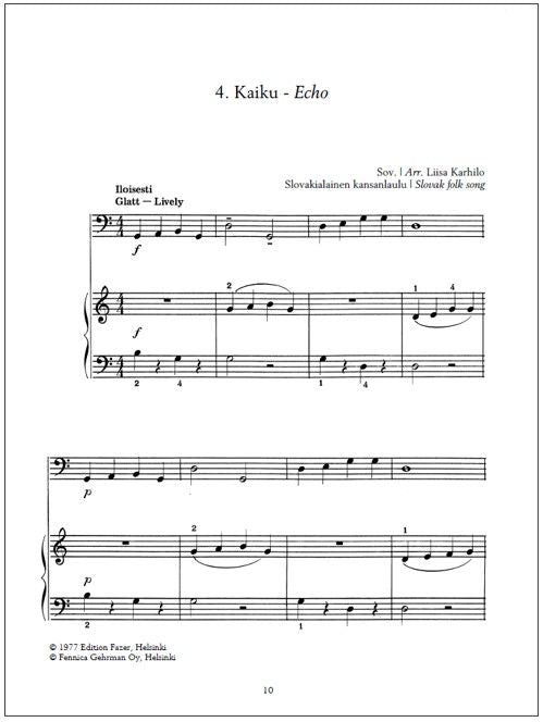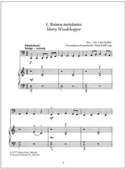 The melodies of the 15 inspired arrangements for young cellist and pianist originate from the rich folk music from Europe and the Americas. Renowned Finnish piano pedagogue Liisa Karhilo (1930-1998) wanted to develop the possibilities for children to play together - make chamber music from the ve... Lue lisää