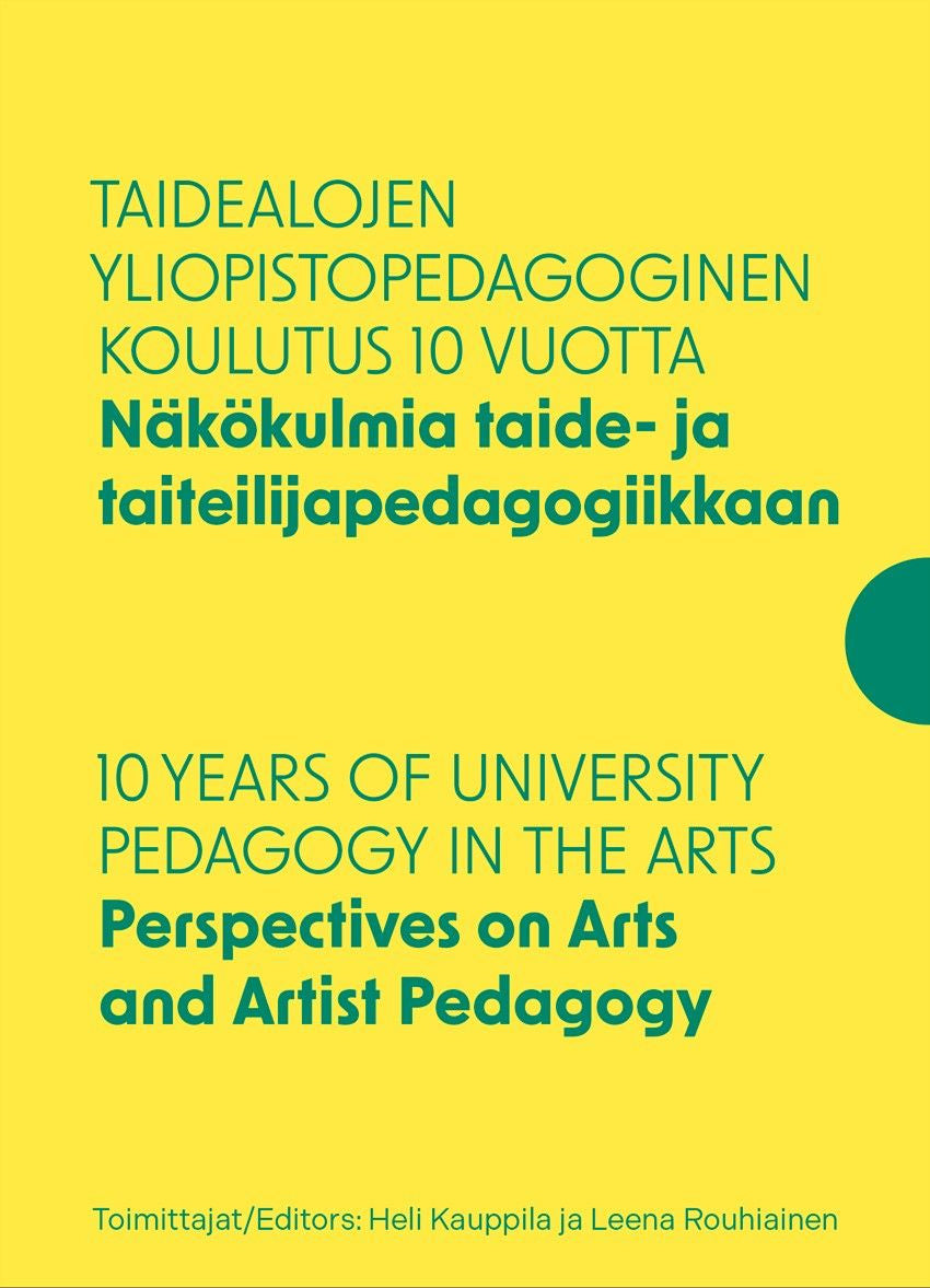 The anthology celebrates the ten years of existence of the university pedagogy in the arts program at the University of the Arts Helsinki, and highlights themes that are addressed by arts- and artist-pedagogues, as well as researchers on arts pedagogy in their work. Their points of view on the pedagogical practices in the arts and the opportunities that art provides as a promoter of growth and change are versatile. They reflect well the multidimensional, multi-artistic, and multidisciplinary activities of the university in the field of art.