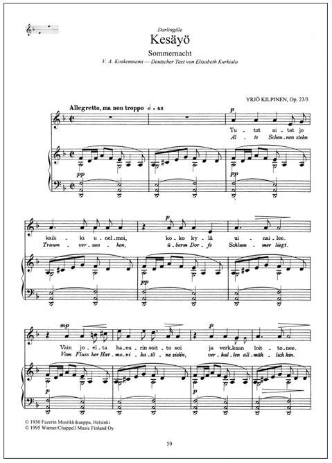 Yrjö Kilpinen (1892-1959) is one of the best-known and most prolific Finnish song writers, with 850 songs listed in his oeuvre. Songs by him are frequently performed in Central Europe and the Nordic countries, and to some extent in England. In his songs Kilpinen sought to break away from the heav... Lue lisää