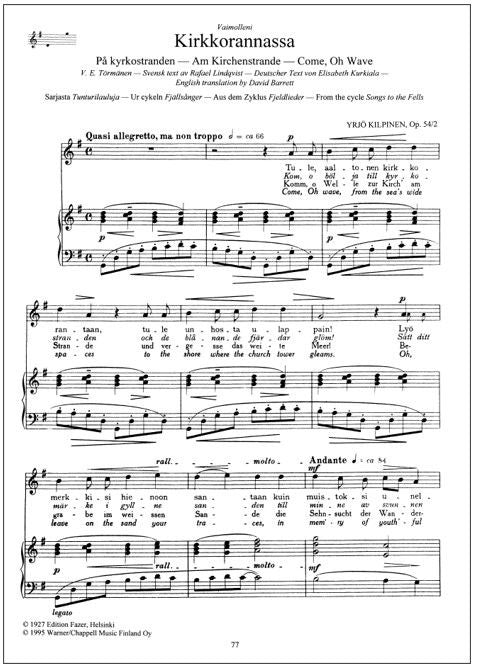 Kirkkorannassa / På kyrkostranden / Am Kirchenstrande / Come, Oh Wave (Törmänen) op. 54/2