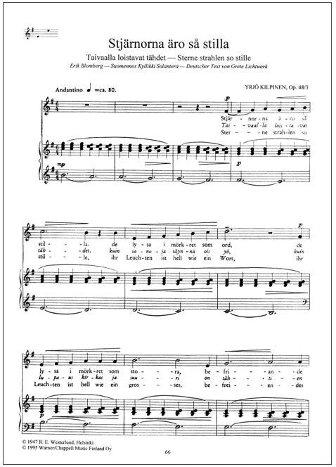 Stjärnorna äro så stilla / Taivaalla loistavat tähdet / Sterne strahlen so stille (Blomberg) op. 48/3
