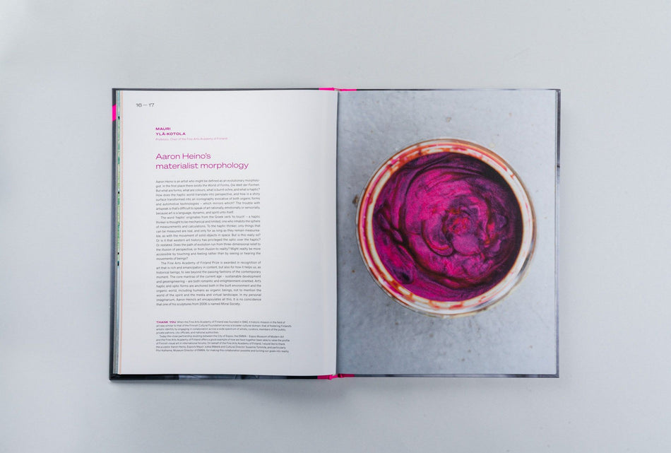 Tämä kirja ja Aaron Heinon näyttely EMMAssa kuuluvat Suomen taideakatemian Heinolle myöntämään palkintoon. "Heinon teokset ovat epäluuloisia olentoja, jatkuvasti valppaana olevia ja epävarmoja omasta roolistaan", toteaa Turun taidemuseon johtaja Kari Immonen artikkelissaan. Näyttelyn kuraattori, ... Lue lisää